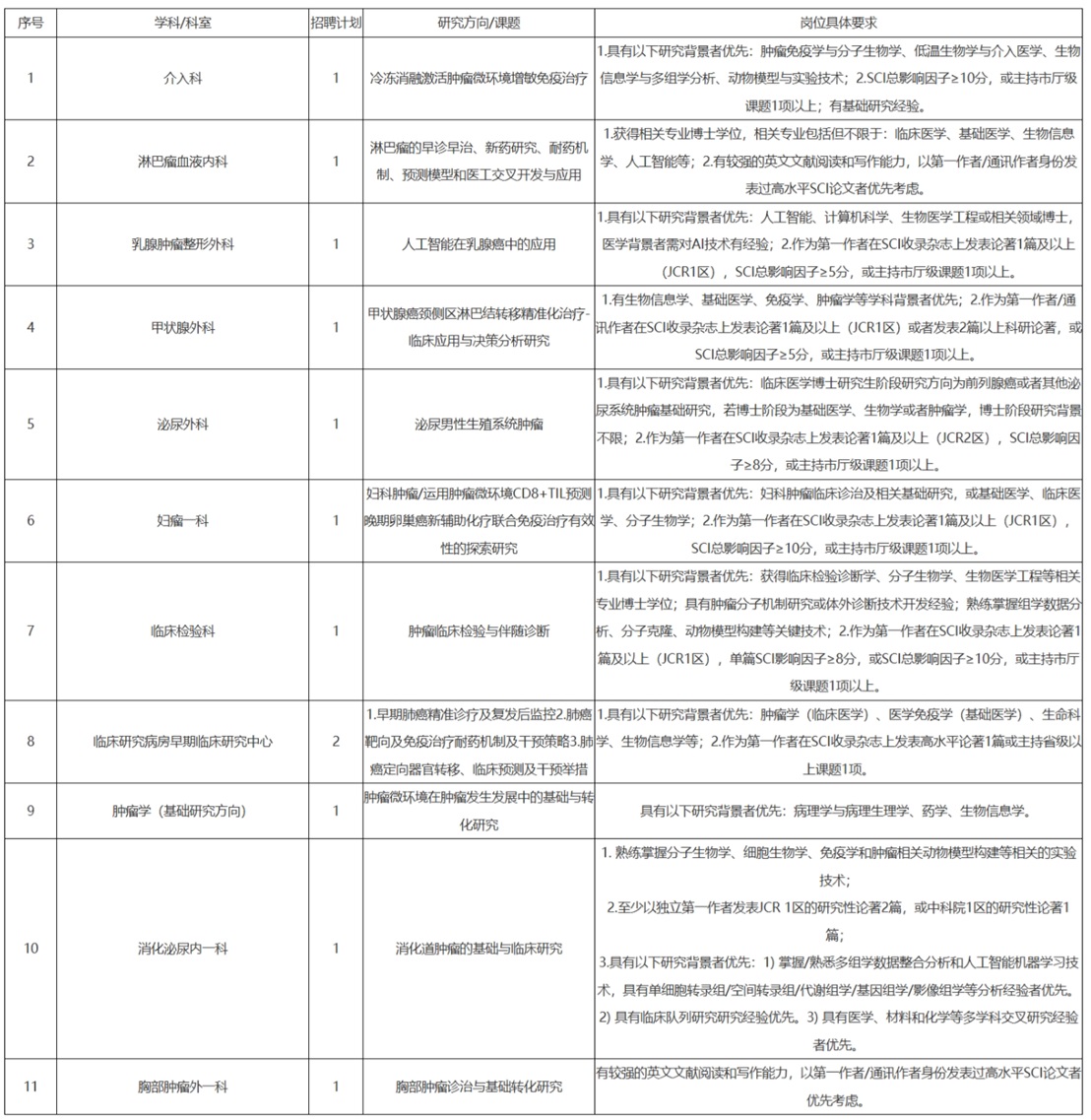根据医院发展及科研需求,现面向海内外公开招收2025年博士后研究人员,热忱欢迎广大优秀青年博士来我院从事博士后科研工作,待遇优厚!具体招收事项如下: