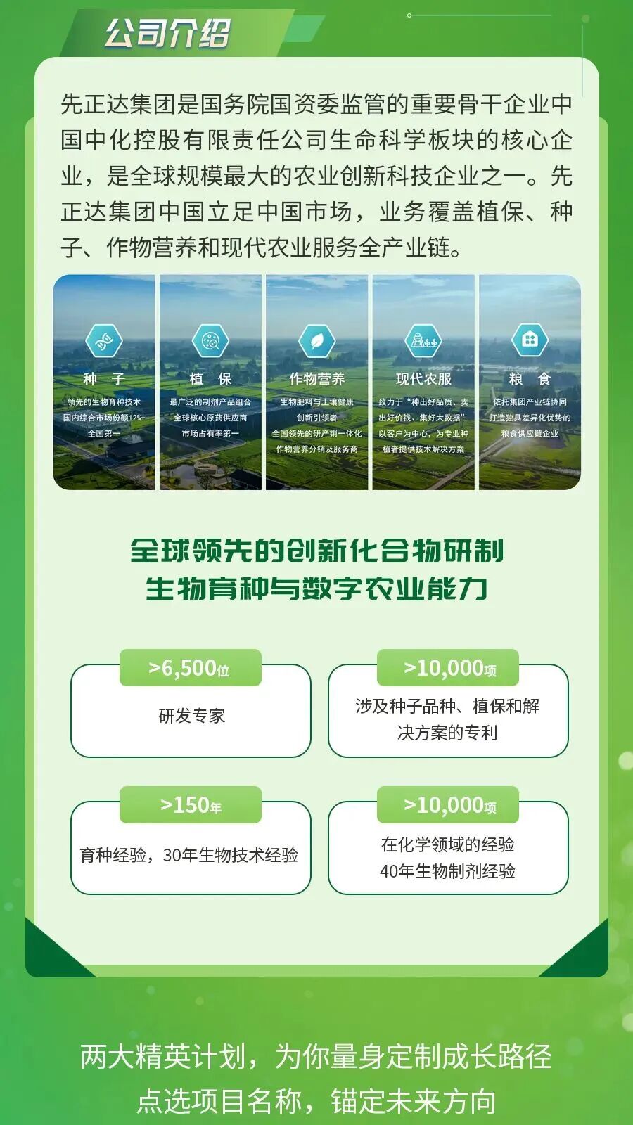 先正达集团中国科学家计划暨2026秋季校园招聘